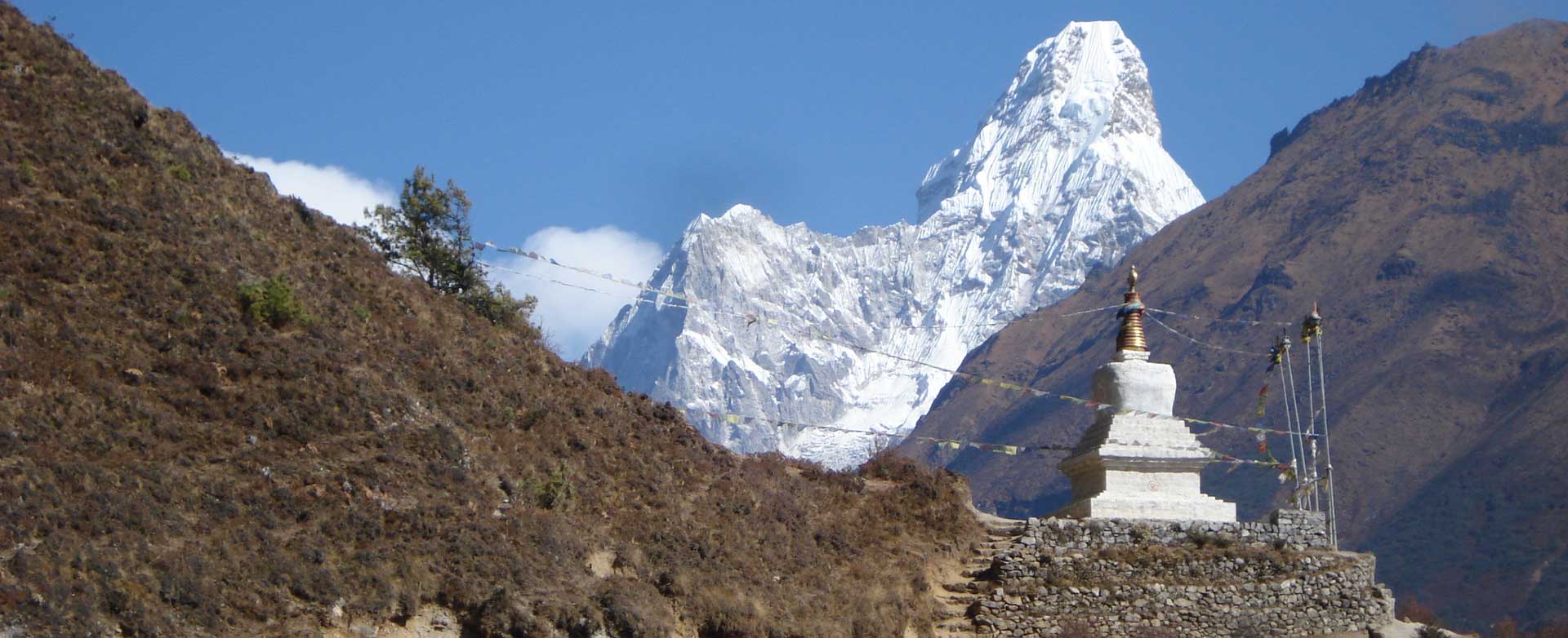 Tengboche Monastery is a Tibetan Buddhist Monastery in Tengboche village and is the largest gompa in the Khumbu region of Nepal offering panoramic vistas of majestic mountains including Everest, Lhotse, Ama Dablam, Tawache, Nuptse, and Thamserku. On ascending at Everest base camp trek, you may find small gumba, chortens, and monasteries studded with fluttering prayer flags. The prayer flags are in 5 different colors tied in a long wire carried with the wind and have deep meanings; red means for fire, yellow is earth, white is air, blue is wind, and green is water.